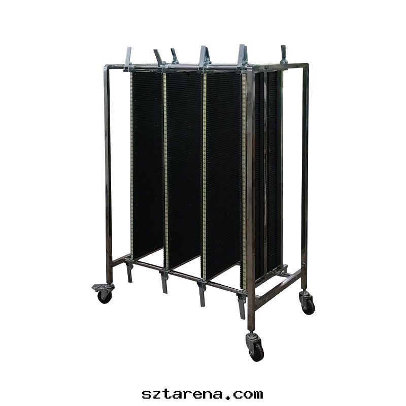 PCBA周轉(zhuǎn)車是(shì)一(yī)種(zhǒng)专門(mén)用(yòng)于(yú)在(zài)電(diàn)子産品制造过(guò)程中(zhōng)運輸和(hé)存放(fàng)PCBA(Printed Circuit Board Assembly,印(yìn)刷電(diàn)路(lù)闆組件(jiàn))的专用(yòng)設備。它(tā)通(tòng)常設計(jì)有防静(jìng)電(diàn)、防震、防塵(chén)等功能(néng),以(yǐ)确保PCBA在(zài)運輸和(hé)存儲过(guò)程中(zhōng)不(bù)受損坏。PCBA周轉(zhuǎn)車廣泛應(yìng)用(yòng)于(yú)電(diàn)子制造工廠(chǎng)、SMT生(shēng)産線(xiàn)、測試車間(jiān)等场(chǎng)所(suǒ),能(néng)夠有效提(tí)高(gāo)生(shēng)産效率,減少(shǎo)人(rén)为(wèi)操作(zuò)失誤,保障産品質(zhì)量(liàng)。
