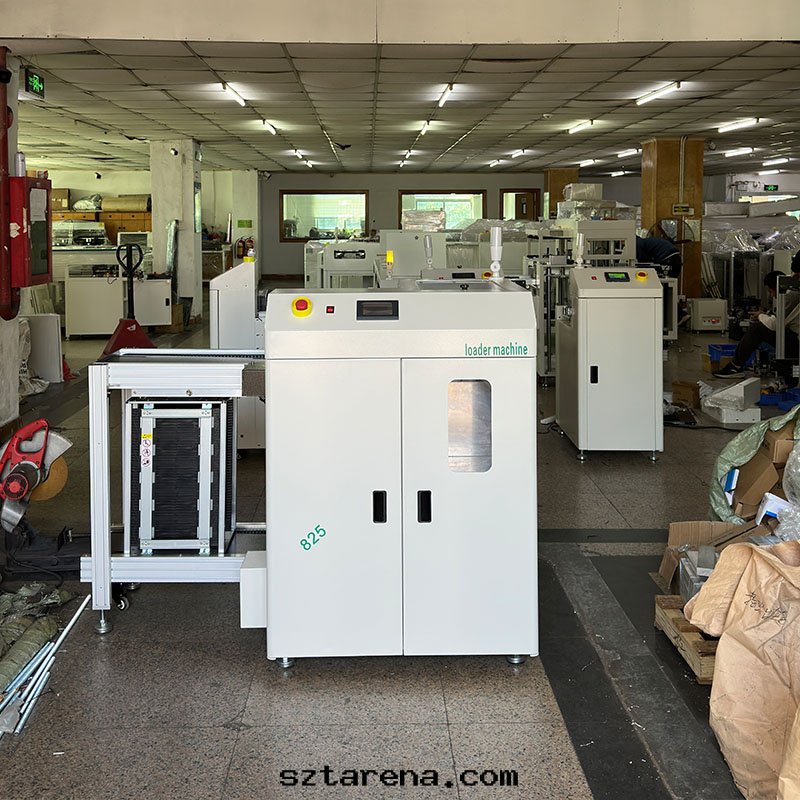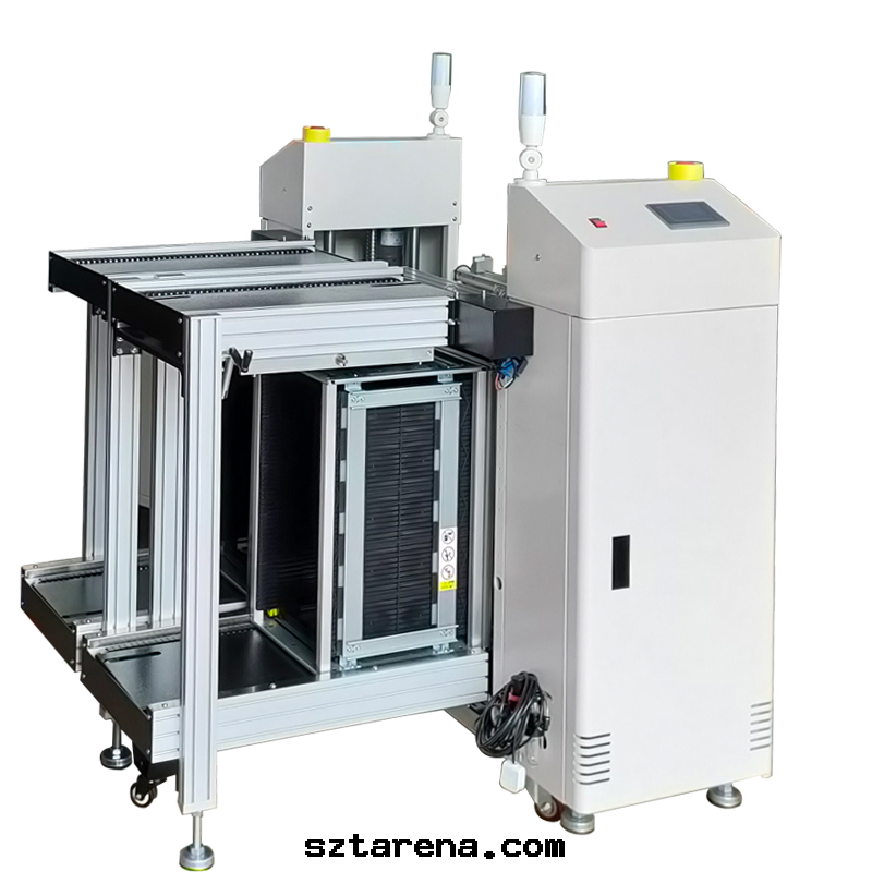 自(zì)動(dòng)上(shàng)料:作(zuò)为(wèi)SMT生(shēng)産線(xiàn)首道(dào)工序,将堆(duī)疊的裸闆逐一(yī)吸附並(bìng)傳送至接駁台(tái)或(huò)印(yìn)刷機(jī)。